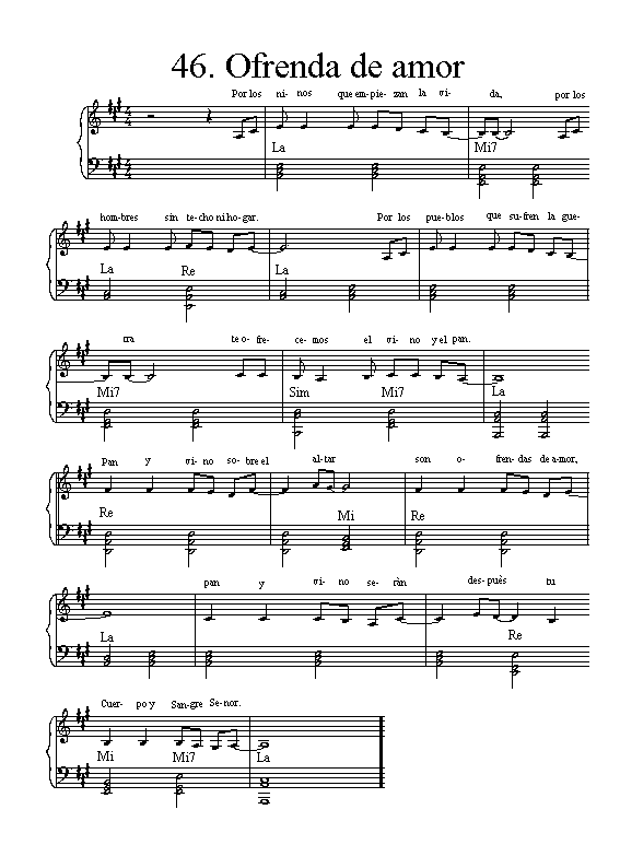 46. OFRENDA DE AMOR: Partitura. (Colaboración: Mauro Bertini) | Ver más Partituras | Ver Cancionero completo |