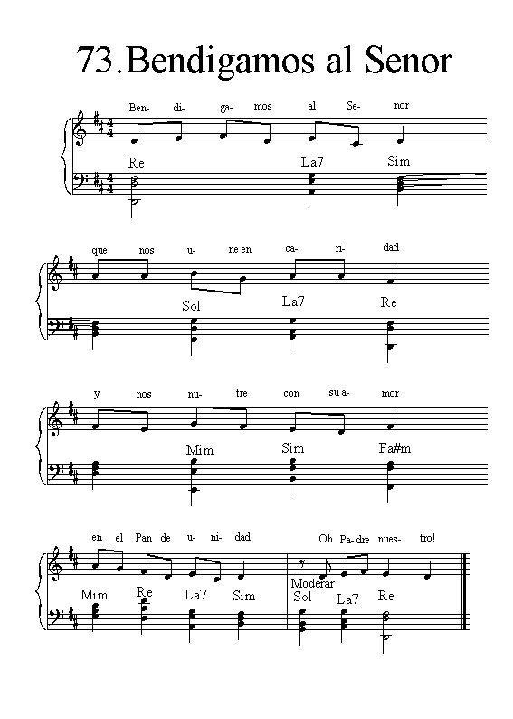 73. BENDIGAMOS AL SEÑOR: Partitura. (Colaboración: Mauro Bertini) | Ver más Partituras | Ver Cancionero completo |
